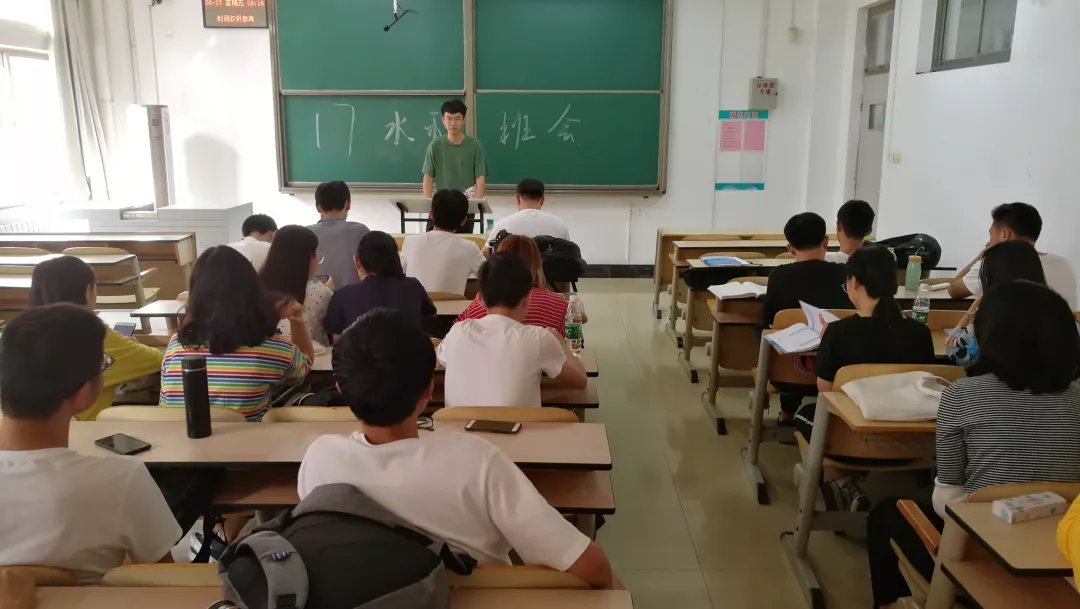 17级水利水电班于兴隆山校区教学群楼召开班会。班长郭章潮主持了本次会议,水电班全体同学到场参会。