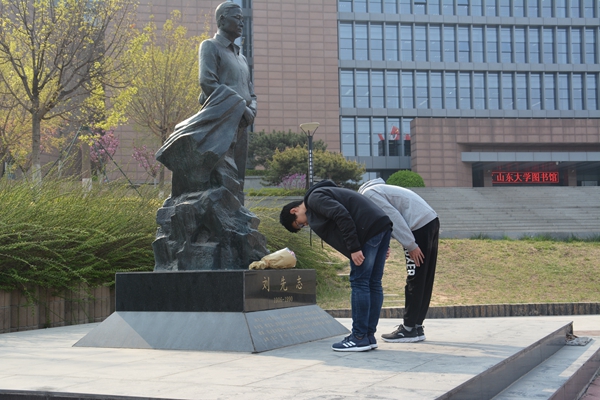 辛勤耕耘三十余载,历任教授、教务长、副院长,为学校的教学、科研、管理等各项工作作出了卓越贡献。他一生追求真理,勇攀高峰,成就卓著,堪称科研表率。纵然先生早已远去,但他知行合一、爱国无畏的光辉精神,及其艰苦朴素、逆境中开拓的意志,都值得同学们借鉴和学习。全体同学肃立默哀一分钟,向刘先志先生致以崇高的敬意,依次有序地向刘先志先生雕像敬献鲜花与贺卡,并鞠躬缅怀,表达深切的敬仰。杨旭腾号召同学们继承发扬刘先志先生不懈追求真理的求知精神和鞠躬尽瘁的奉献精神,秉承哀思,铭记教诲,为提升自我,投身社会主义建设而努力奋斗。