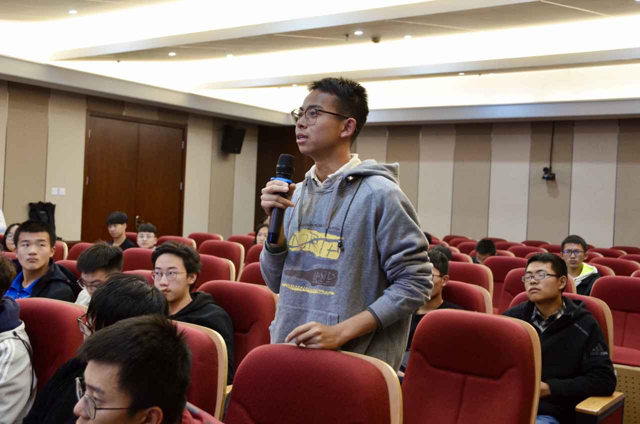 在最后的互动交流环节中,同学们踊跃提问。于建成对职业生涯规划、创业时机、就业选择等问题进行了详细指导。