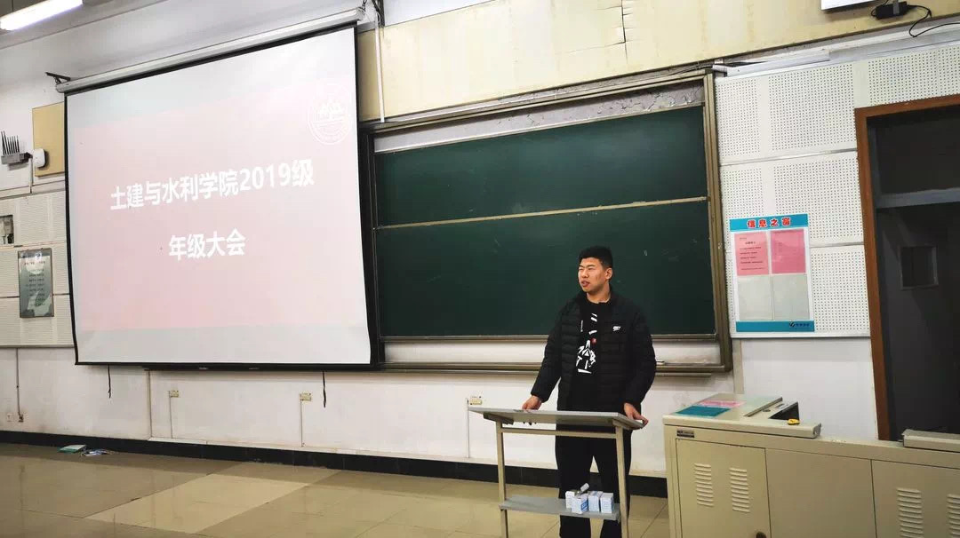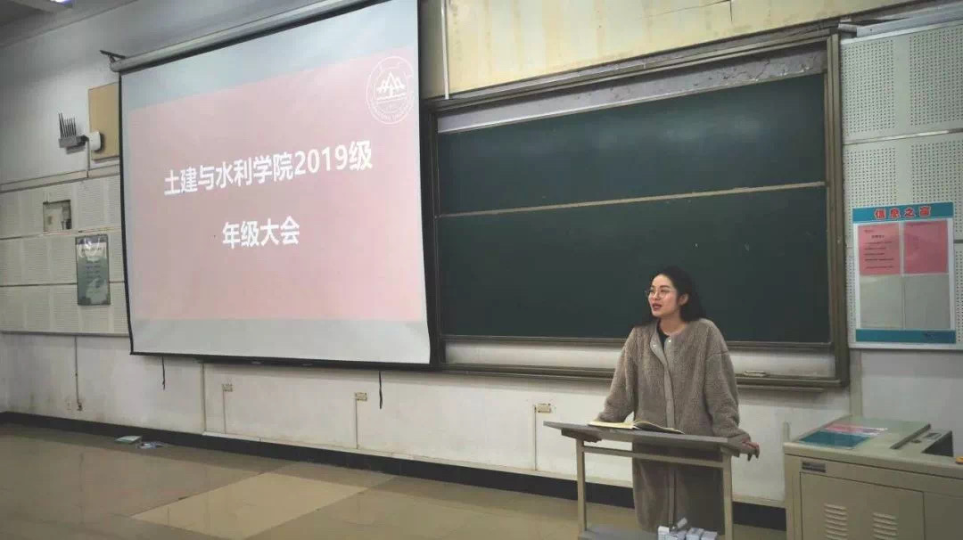 于兴隆山校区讲学堂召开2019级年级大会。会议由2019级辅导员何玥主持讲解,四位辅导员助理及2019级全体学生参加。本次会议由简要年终总结、寒假注意事项及寒假安排建议三部分组成。