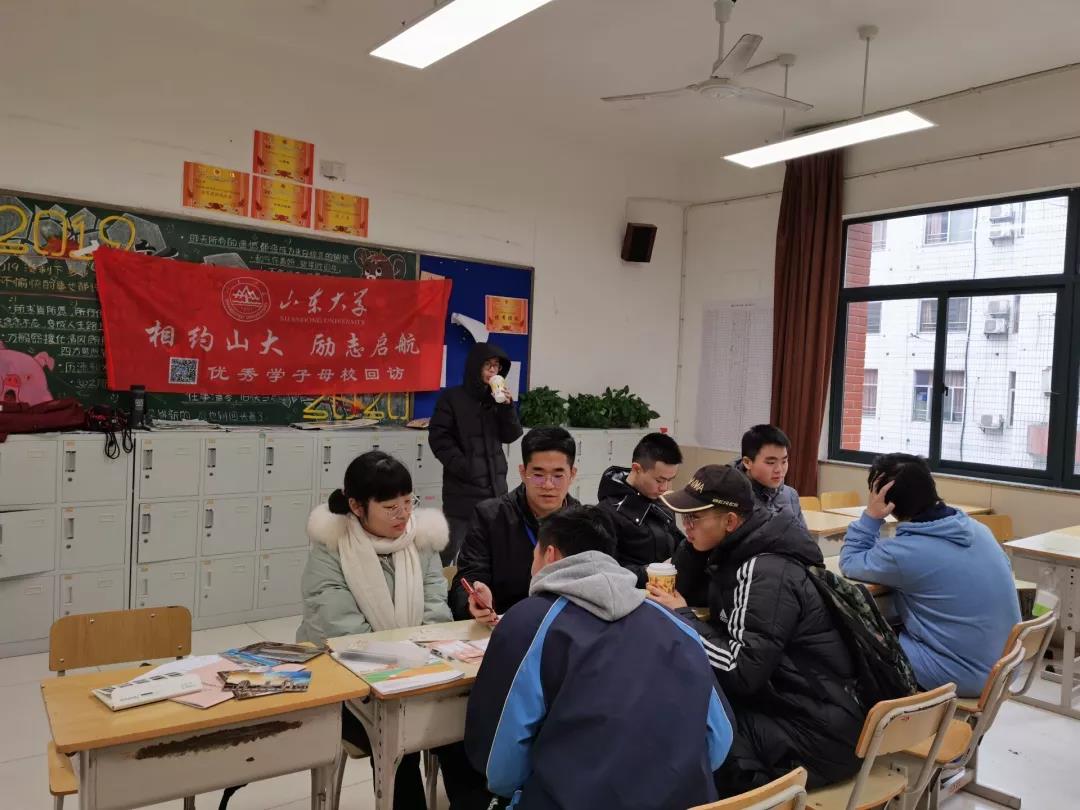 活动开始前,山大回访组组内紧密联系,沟通,决定采用进入教室宣讲,摆小展台1对1咨询等方式展开活动,同时与母校团委进行联系,将进入班级,相关教室,相关布置等活动安排进行明确。