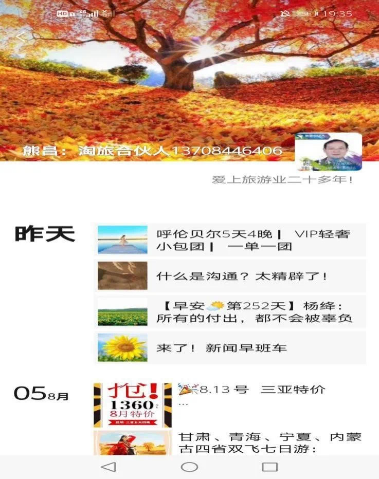 据采访了解到,该公司属于云南淘旅下设的一个网点,属于组团社,开业时间为2018年4月8日,经营业务包括出境游、入境游、国内游等。目前该旅行社主打观光、休闲游,并且以周边游为重点。当谈及疫情对该旅行社造成的影响时,负责人表示:2020年的疫情给全球旅游业按下了暂停键,尤其对于旅行社来说,损失更大,在疫情期间,他们不得不转业,如在微信上进行商品营销等。但随着疫情逐渐稳定,旅行社也陆续复工,但主要进行短期游,时间在2--3天,地点主要在云南省内或者昆明周边,如九乡风景区、石林风景区等地。随后成员加了负责人微信,以便更深了解旅游趋势及走向。