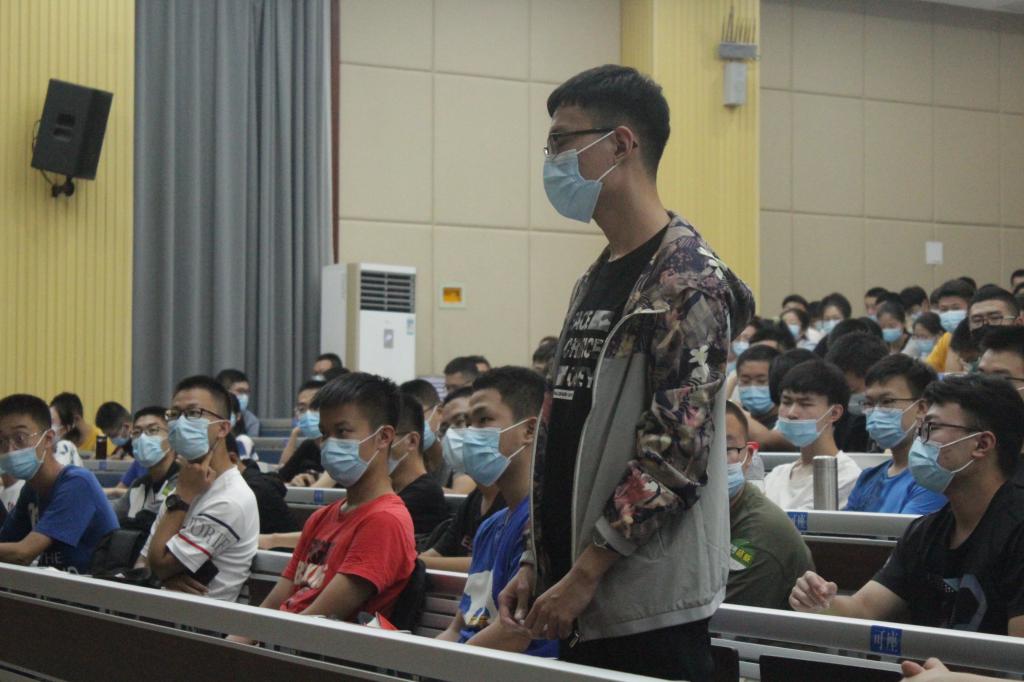 新生导助马湛涛、田云汉、鲁嘉祺、徐巍珂,齐鲁交通学院新生导助孙晟杰、赵羽凡。最后师生互动,同学们踊跃提出问题,梁莹、王超及导助们耐心回复,场面十分融洽。