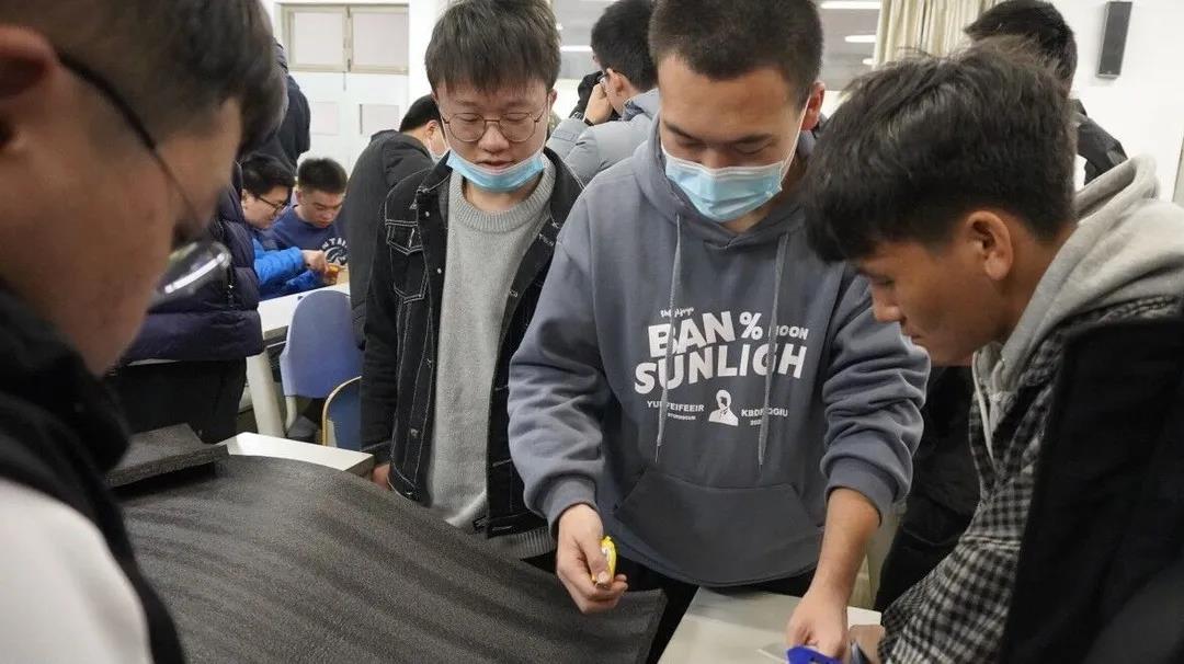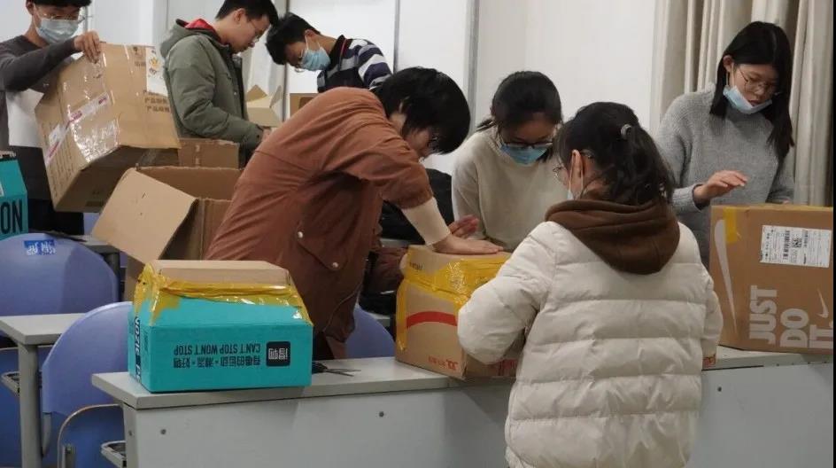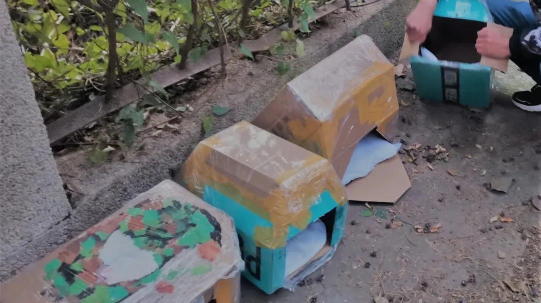 第一阶段是收集纸盒。11月12日到11月19日期间,同学们利用“双11”前后大量快递纸盒流入的机会,在快递站附近摆设摊位,为同学们提供免费开箱服务,并设置抽奖项目,以此收集大量的快递纸箱,为后续活动提供原材料。