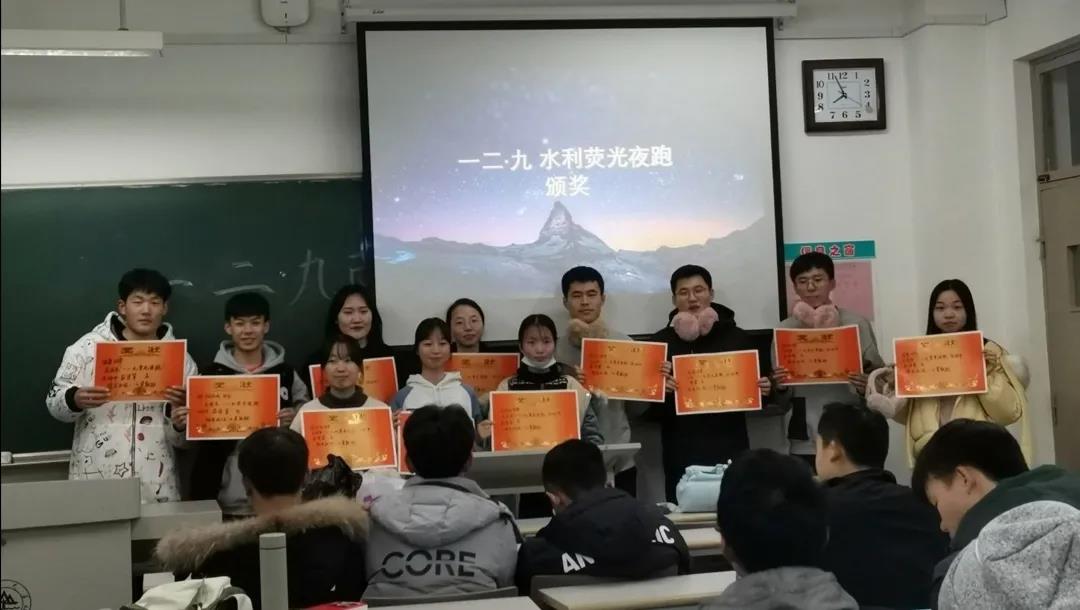 水利系于兴隆山校区风雨操场开展“一二九”爱国运动荧光夜跑接力跑纪念活动。2018级与2019级水利系本科生参加此次活动。