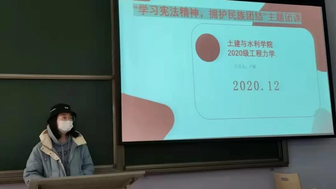 2020级工程力学班于教学楼1102教室开展“学习宪法精神,拥护民族团结”主题团日活动。主题活动由团支书尹聪主持,工程力学班全体团员参加,非团员同学旁听。