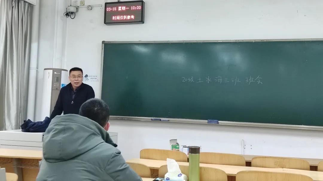 2020级土水海三班于兴隆山教学群楼召开了本学期第一次班会。本次会议由土水海三班班主任武科主持,土水海三班全体同学参与。