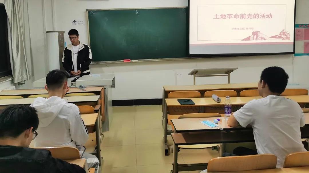 建校120周年学习党史校史主题团日活动,活动由团支书李骏程主持,土水海三班部分入党积极分子主讲,土水海三班全体团员参与了活动。