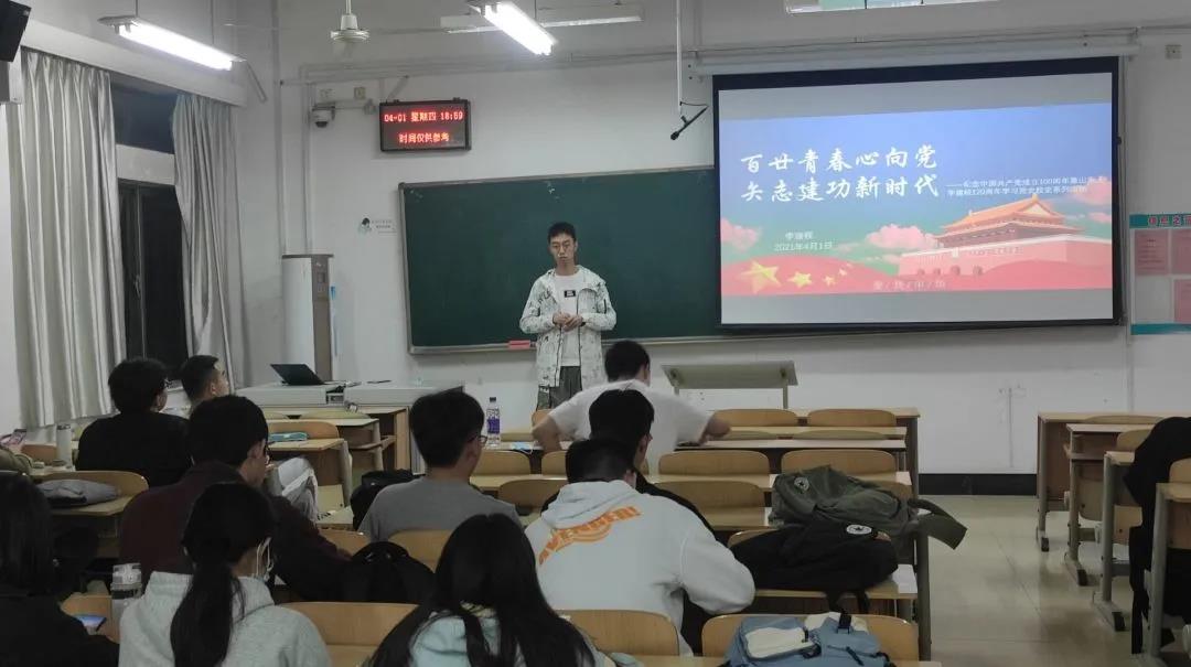 4月1日晚,2020级土水海三班于教学楼1302开展主题为“百廿青春心向党 矢志建功新时代” 庆祝中国共产党成立100周年暨吃瓜网
