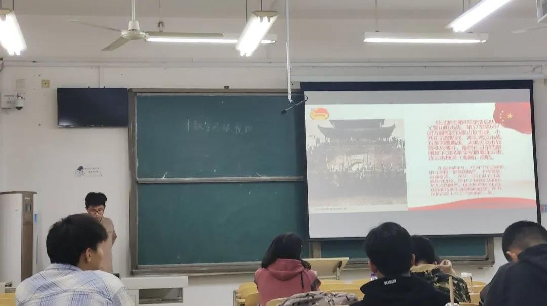 最后,刘家骏上台总结。他提醒大家虽然处于和平年代,但这是优秀的前辈奋斗得来的。同学们更应该加紧努力学习,争取为加快社会主义经济建设、增加社会主义凝聚力、为祖国富强奉献出自己的一份力量。