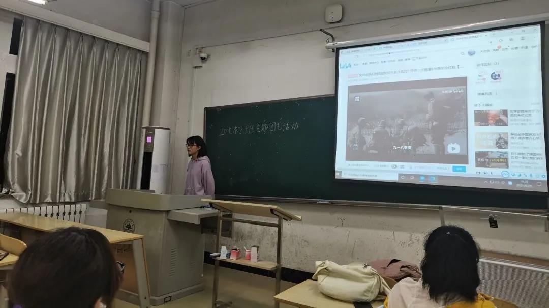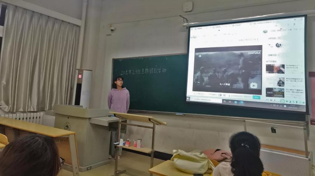 在安全教育后,廖冬萍开展了主题团日活动。廖冬萍围绕918事变进行了主题团日活动的学习,让同学们能更好的铭记历史,砥砺前行。首先,她用一段视频,让同学们深入了解了918事变,增强同学们的历史意识。本次学习主要从了解和学习918事变的原因、918事变的意义以及对警醒与启发三方面进行了学习。