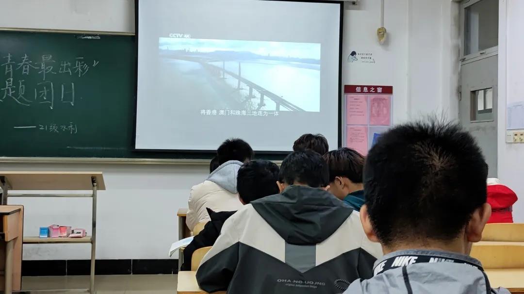 以知促行——劳动教育主题观影。杨思莹为同学们播放《港珠澳大桥》纪录片,感受大国工匠的不辞辛劳,体悟其中积极向上精神风貌和价值取向,推动青年主动接受精神洗礼。结合观影实际,同学们开展集体学习与交流研讨,让劳动教育“看得见”。