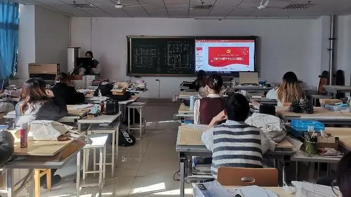 2018级建筑2班全体团员于实验楼542召开专题学习会,集体学习领会党的十九届六中全会精神,本次学习会由团支书赵心如主持。
