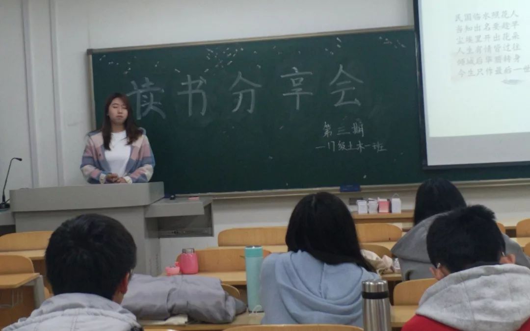 17级土木一班于教学楼3210举办第三期读书分享会,会议由团支书王憬慧主持,土木一班共15名同学参加。