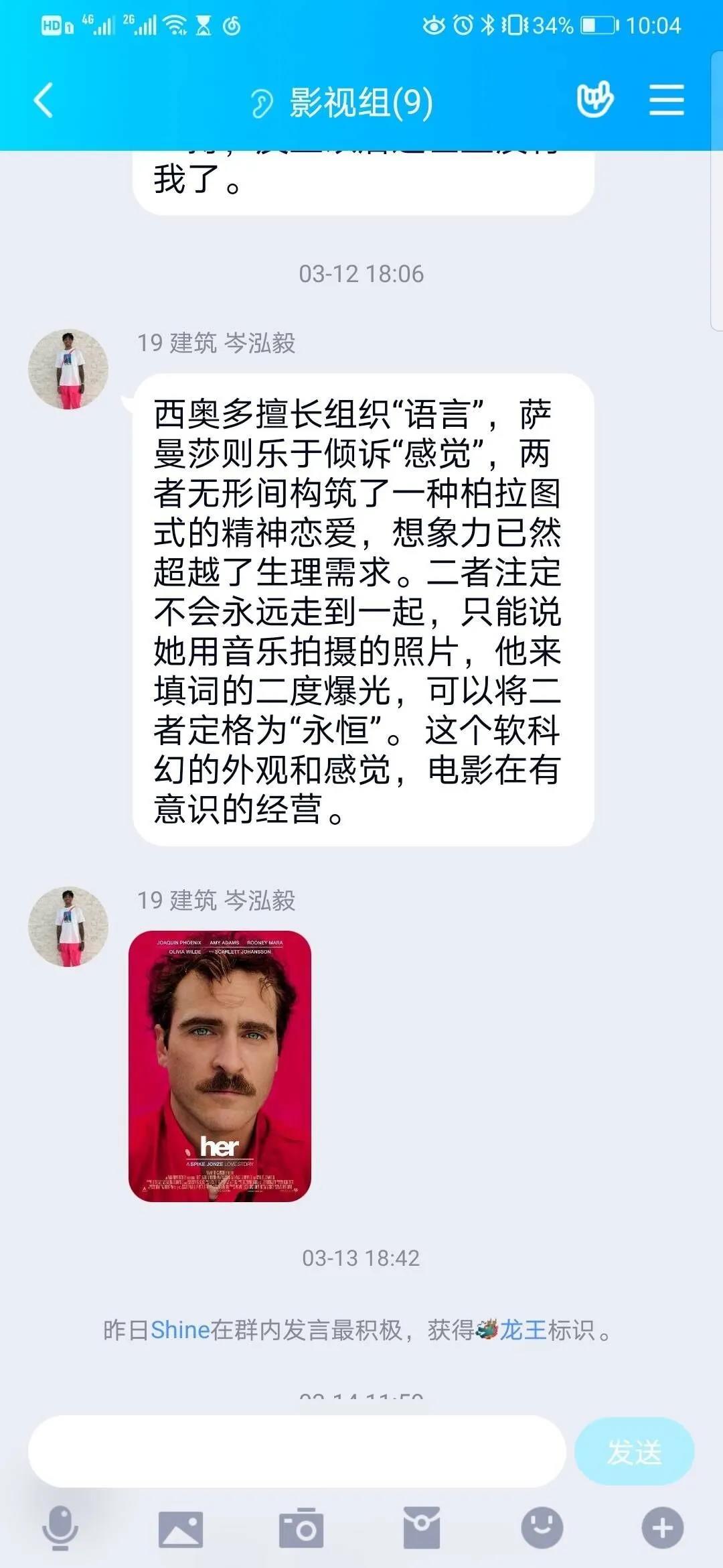 三月中旬,2019级建筑一班刘浩然等九名同学成立影视小组,开展云观影活动,旨在响应国家号召,帮助同学们在家中隔离期间调节心理状态,提高文化素养与生活情趣。