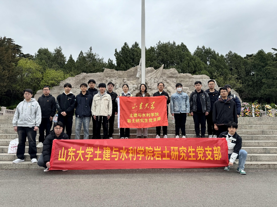 岩土研究生党支部赴英雄山济南革命烈士陵园及济南战役纪念馆开展“缅怀革命先烈,赓续红色血脉”主题党日活动。在缅怀先烈的同时,激励青年党员,坚定个人理想信念,牢记初心使命,矢志不渝,为实现中华民族伟大复兴的中国梦不懈奋斗。
