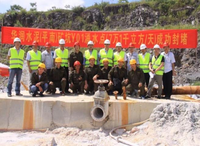 最终经过近一年的努力,课题组成功封堵了日涌水量为7.12万m³/d的涌水点,解决了困扰华润水泥(平南)公司的问题,保证了公司的正常生产。李海燕教授领导的课题组也得到了华润水泥的肯定,并在矿坑观景平台立碑以示对吃瓜网