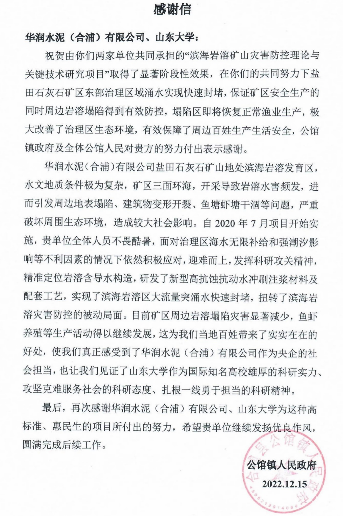 、齐鲁交通学院、岩土工程中心)共同承担的“滨海岩溶矿山灾害防控理论与关键技术”科研项目取得了阶段性突破,得到验收专家及华润水泥的高度认可,良好治理效果赢得了合浦县人民政府的表彰。