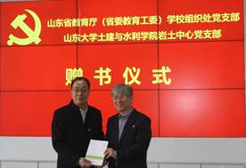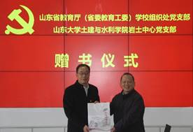 随后,省委教育工委副书记、教育厅党组副书记、副厅长(正厅级)冯继康向岩土中心党支部全体党员赠书。全体人员观看了岩土中心党支部微视频“把支部建在工地上”,该视频也入选了全省基层党组织“我和我的支部”微视频优秀作品奖。